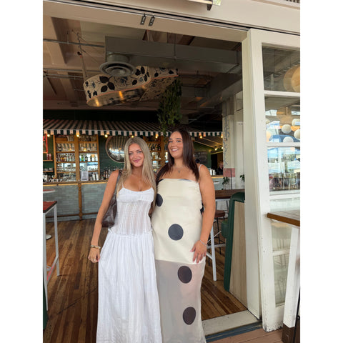 - Crafted from sheer organza with bold polka dots and a column silhouette.