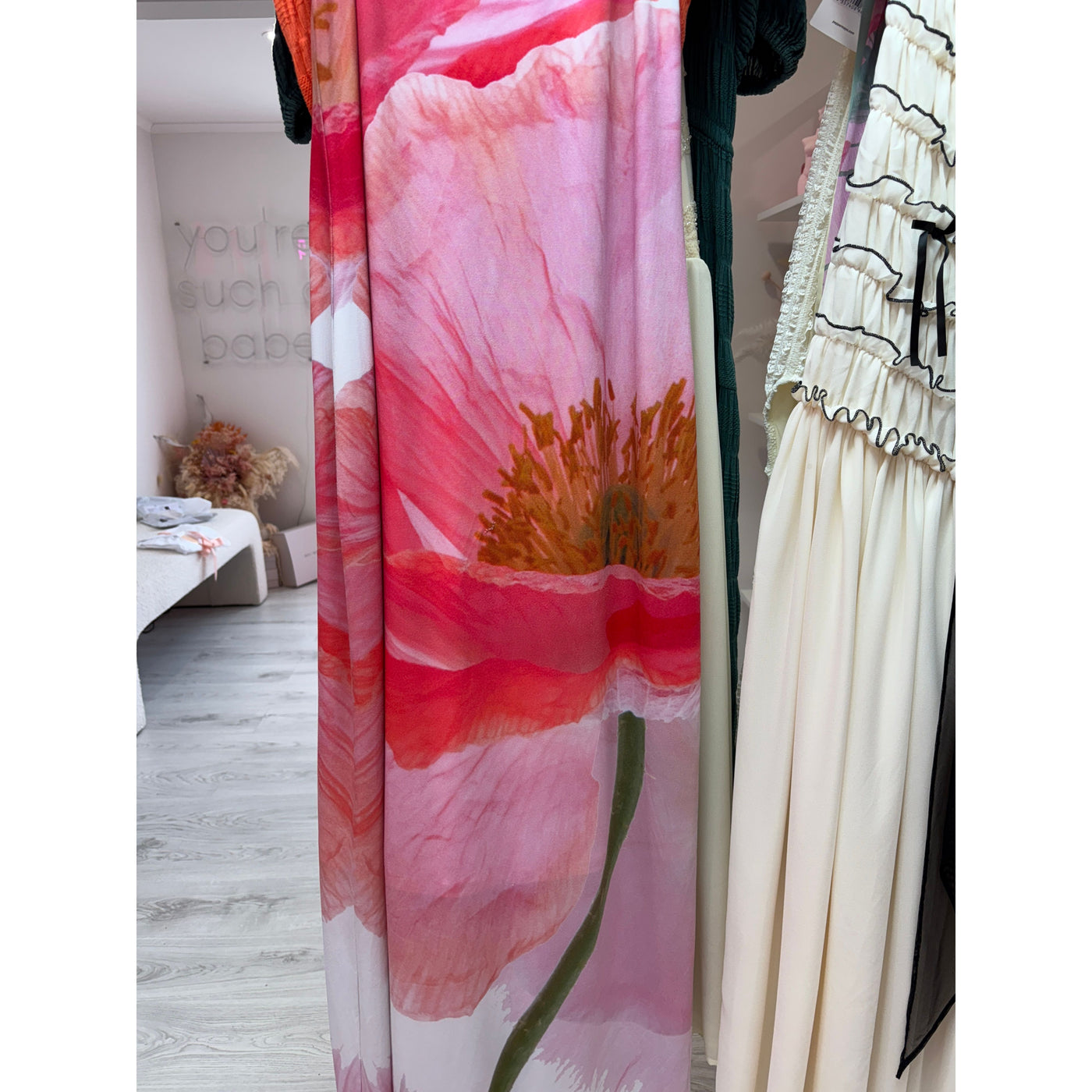 Has had a hole repaired on the front centre flower. Not very noticeable on. Price is reflective of this.
